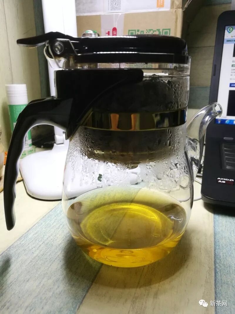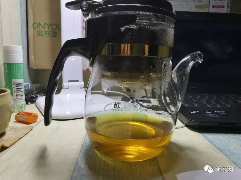 第五泡:17s出湯,湯色黃亮,煙感減少,香氣均無(wú)明顯下降,回甘更快、更持久,從口到喉部灌滿著香氣,越發(fā)覺(jué)得口感變化明顯,自身充滿愉悅感。