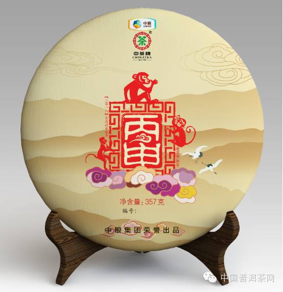 中茶的背景顏色為土灰色,下面祥云為紫色,還有紅色的丙申字加上紅色小猴子。再加上背面豐富的背景畫面,都呈現(xiàn)出一片祥和的景象,表達(dá)的東西更為豐富。而大益的就顯得單調(diào)和素雅了些,又是熟茶顯得有點(diǎn)格格不入。但整體上兩個均表達(dá)了他們自己對2016猴年的期許。