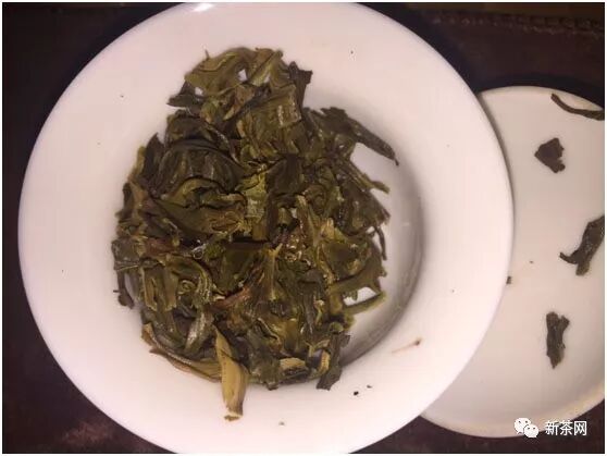 葉底葉片芽頭肥嫩厚實,嫩葉較多,含有一定的茶梗,葉片完整度較差,聞香氣依舊濃郁。