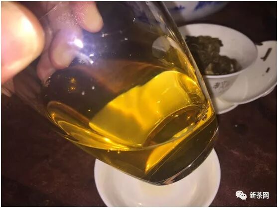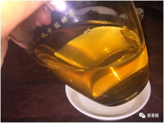 看茶湯,第一泡茶湯,湯色黃亮,稍顯渾濁。