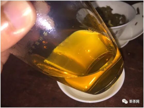 看茶湯,第三泡茶湯,湯色黃亮,與第一泡差不多。