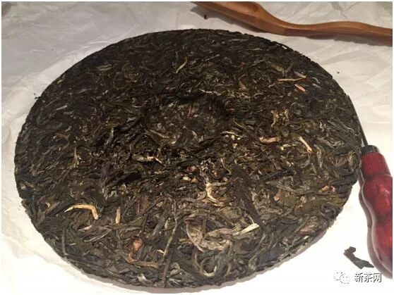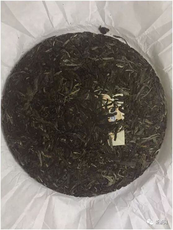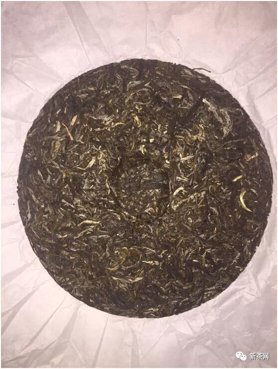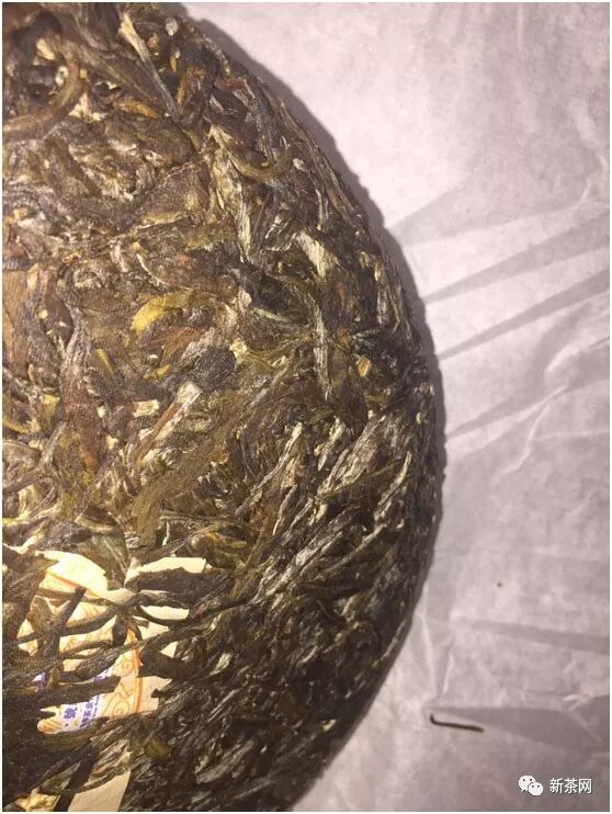 拆開包裝棉紙,觀察茶餅,壓制規(guī)整,松緊適中,無掉邊;茶餅正面條索清晰,餅面光亮,白毫顯露,摻有茶梗、黃片;茶餅背面與正面差不多。聞氣味,由于是18年新茶,清新茶香味十足。