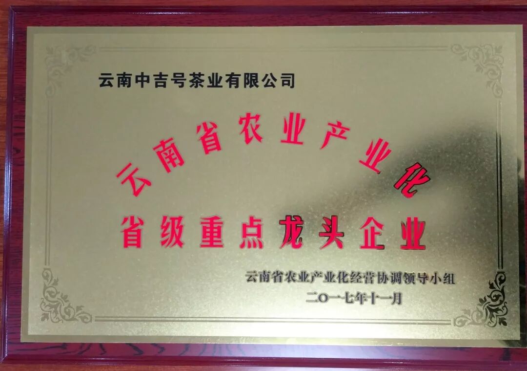 2017年12月,中吉號(hào)茶業(yè)榮獲云南省農(nóng)業(yè)龍頭企業(yè),這榮譽(yù)資質(zhì)的取得是政府與社會(huì)對(duì)中吉號(hào)綜合實(shí)力的肯定和認(rèn)可。