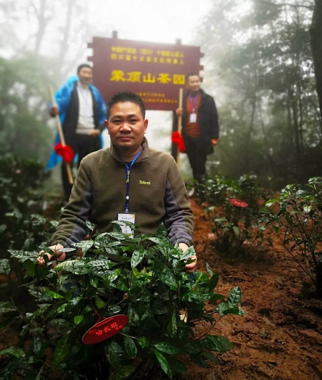 喻長(zhǎng)根董事長(zhǎng)親手種下茶樹(shù)并掛上自己的名字牌