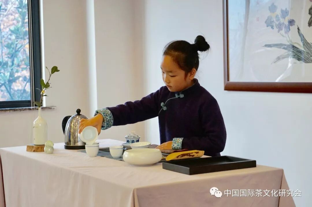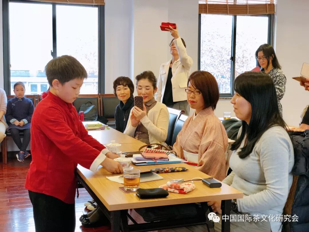 杭州市育才教育集團(總校)五(1)班的王州恩小朋友純熟地沏泡了九曲紅梅,為日本茶人奉上溫暖的茶湯。