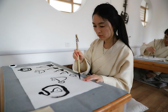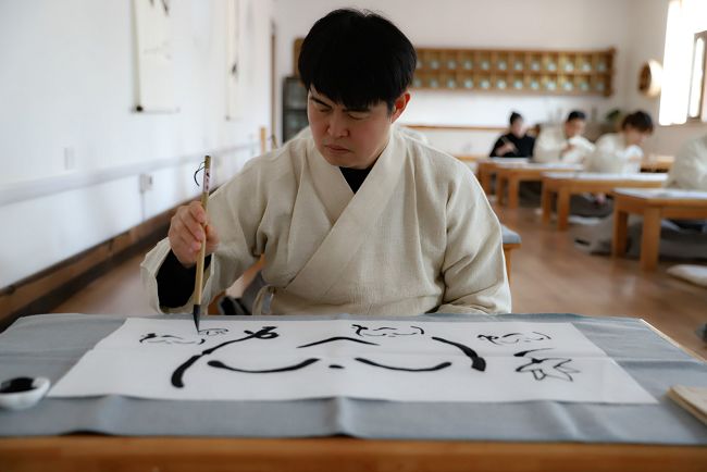 訪問團老師們共同體驗了“中國禪”的種種功法,行禪、禪畫、凌波書法.....一呼一吸一招一式,老師們?nèi)硇耐度?,在一動一靜、一虛一實中切身感受了中國禪的獨特魅力。