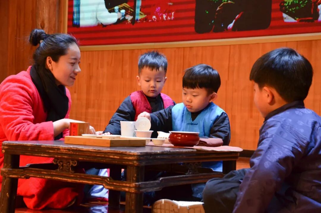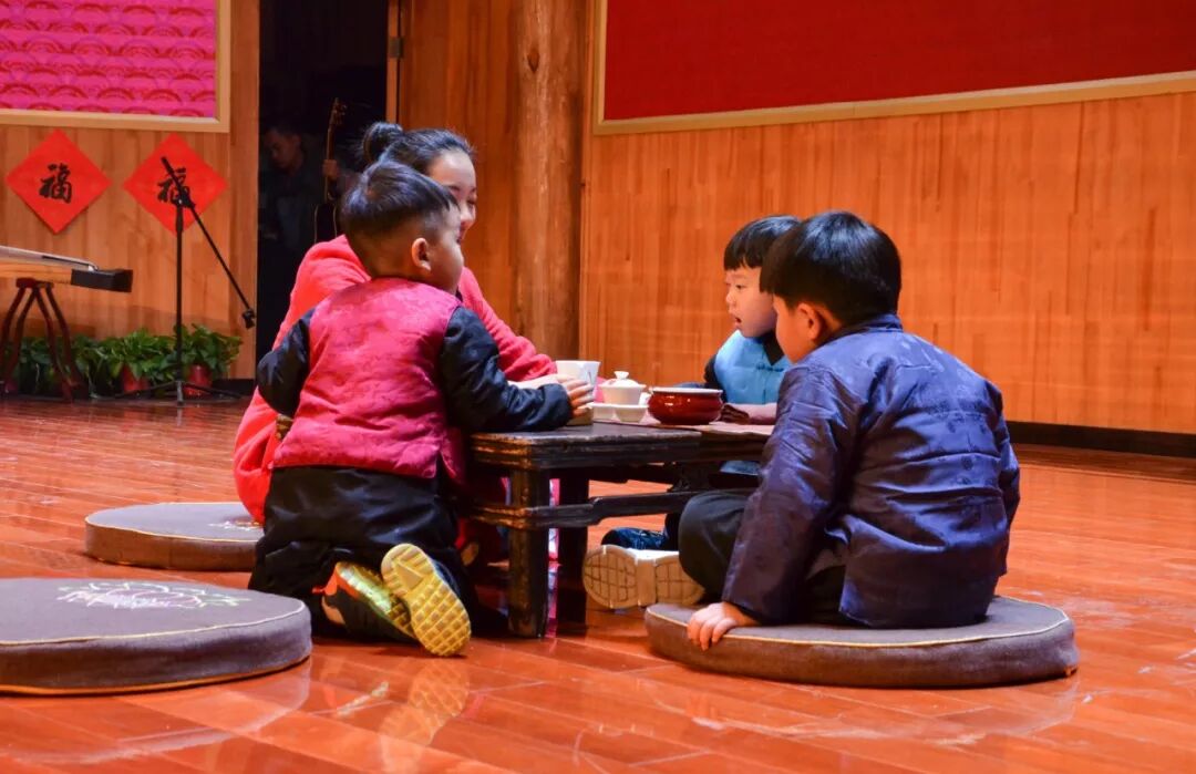 翰仁堂帶來的 表演《吃茶去》,此節(jié)目的亮點(diǎn)是3位非??蓯鄣男∨笥褞淼牟杷嚤硌荩∨笥雅萜鸩鑱碛心S袠?,不愧是國香茶城的小小茶藝師!