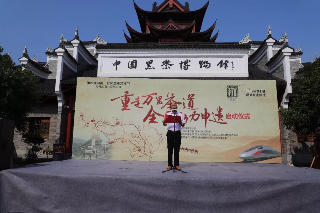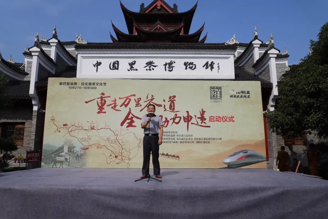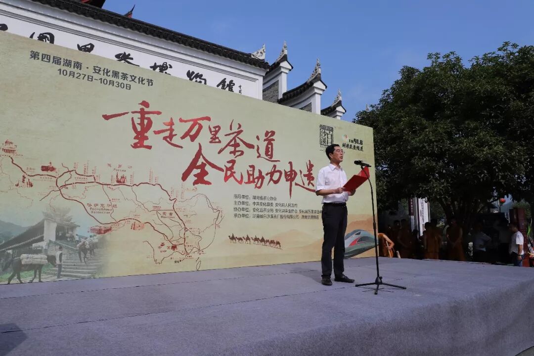 李俊夫代表安化縣茶業(yè)協(xié)會(huì)宣讀“重走萬(wàn)里茶道,全民助力申遺”倡議書(shū)。