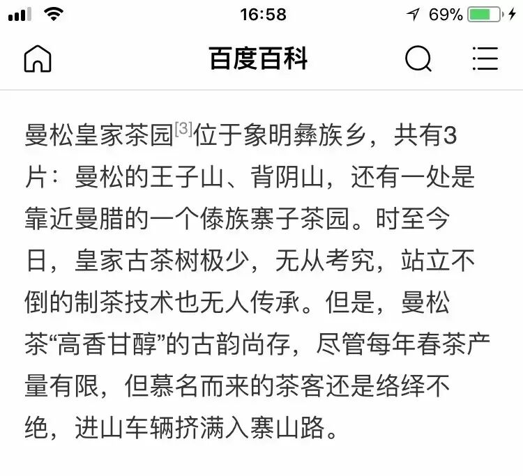可以明確的是曼松是確確實(shí)實(shí)存在的一個(gè)寨子,而曼松貢茶又要如何界定?產(chǎn)區(qū)是否包含了曼松村、背陰山村等地?這還需要學(xué)者去論證考究。