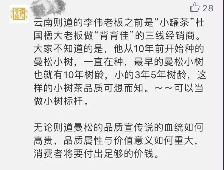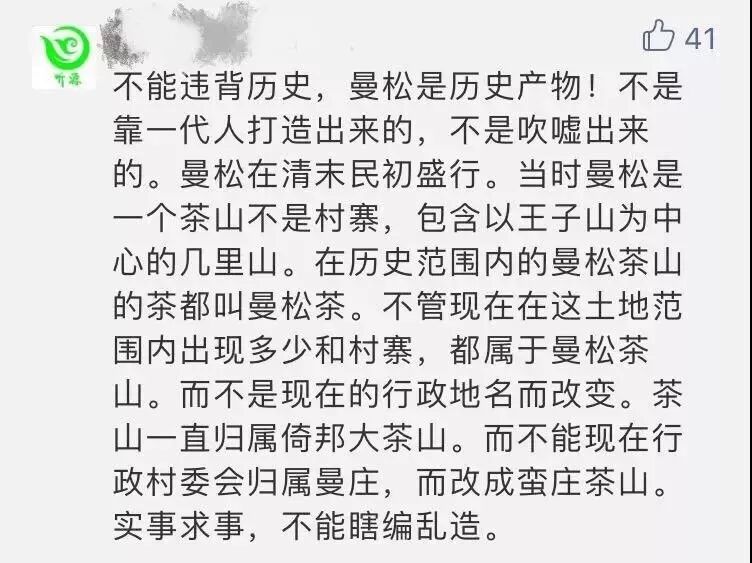 除了對(duì)則道商標(biāo)的質(zhì)疑,也有茶友為則道抱不平:“要是沒有則道,估計(jì)現(xiàn)在曼松的村民天不亮就要上山割橡膠,哪有采茶喝茶這么滋潤。”