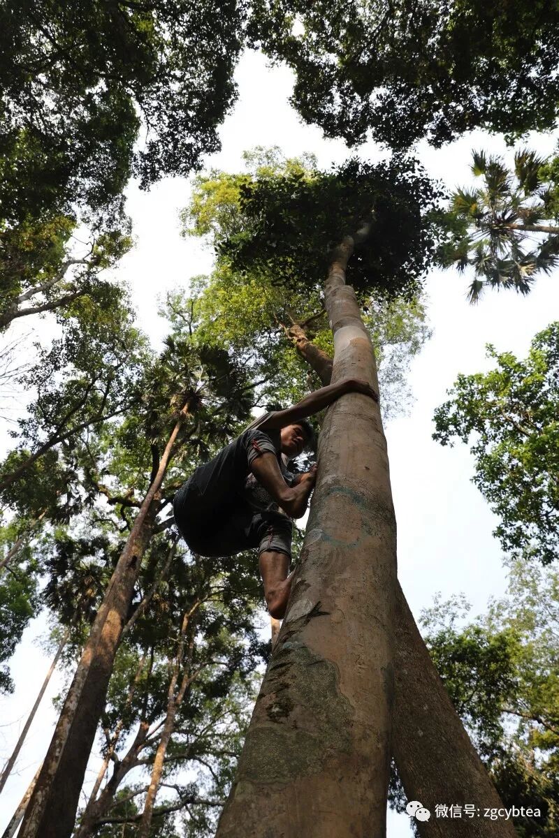 按照前文所述,高桿古樹樹高在10米以上,且直立而長。這樣的樹形,導(dǎo)致了毫無借力之處,采摘難度實為不易。除非是當(dāng)?shù)氐默幾?,外人也只能望樹而嘆。