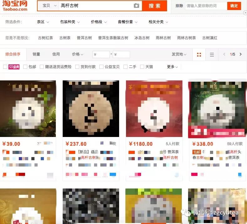 據(jù)不完全統(tǒng)計,以“高桿古樹茶”為關(guān)鍵詞,在某搜索平臺的熱度結(jié)果,一度可達(dá)數(shù)十萬個,這還不包括在某電商平臺上的上百款高桿古樹寶貝。各種與“高桿古樹茶”相關(guān)的產(chǎn)品,其價格從每斤幾十元到上萬元不等。