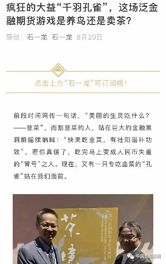 8月20日,《瘋狂的大益“千羽孔雀”,這場泛金融期貨游戲是養(yǎng)鳥還是賣茶?》;