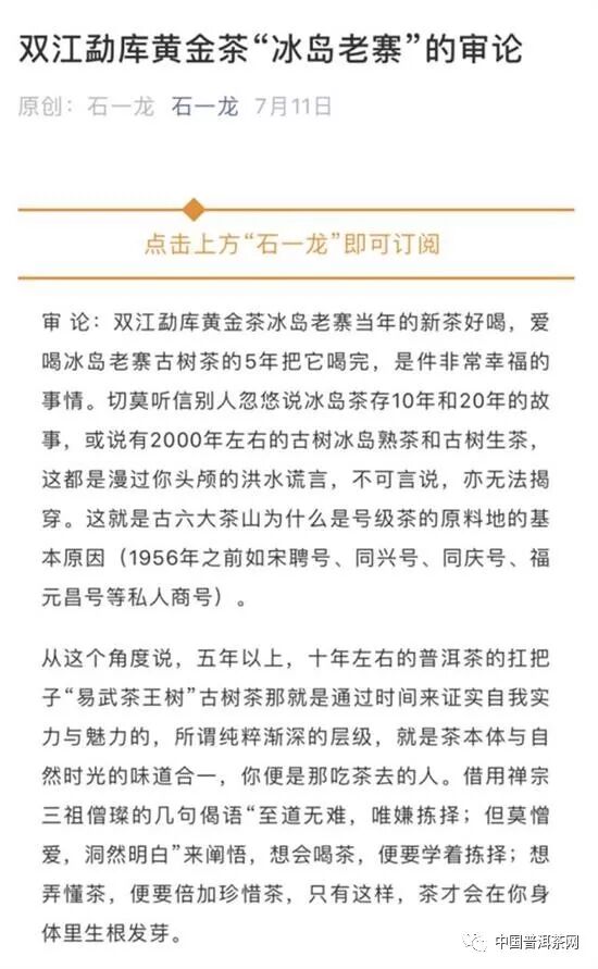 7月11日,《雙江勐庫黃金茶“冰島老寨”的審論》;