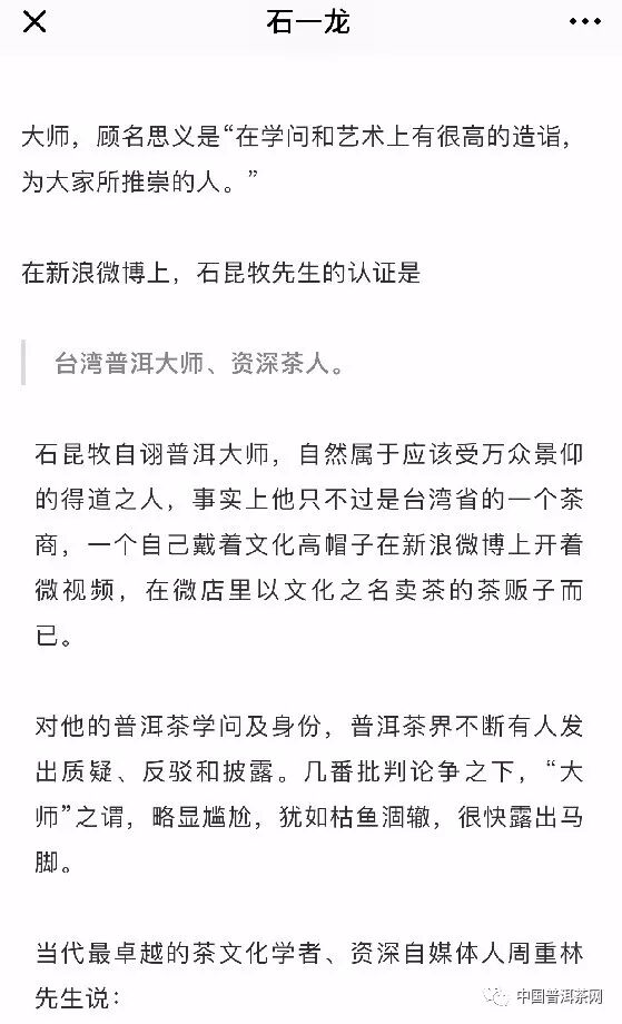 《茶界現(xiàn)形記:“臺灣普洱大師”石昆牧》