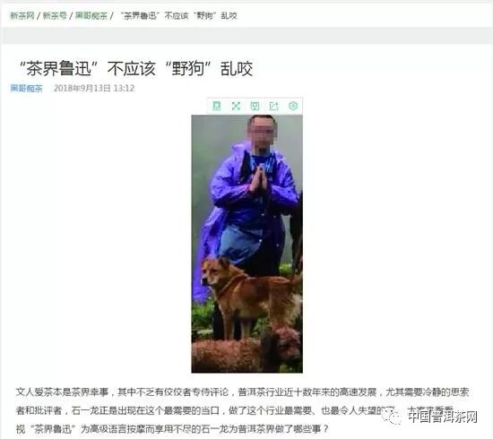 9月13日,黑哥在自己的新茶號《黑哥癡茶》發(fā)布文章《“茶界魯迅”不應(yīng)該“野狗亂咬”》。