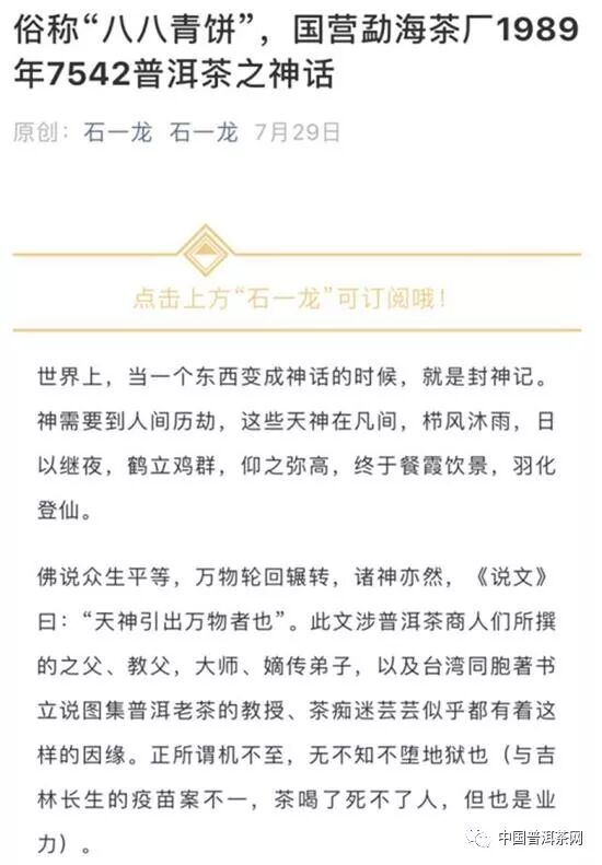 7月29日,《俗稱“八八青餅”,國營勐海茶廠1989年7542普洱茶之神話》;