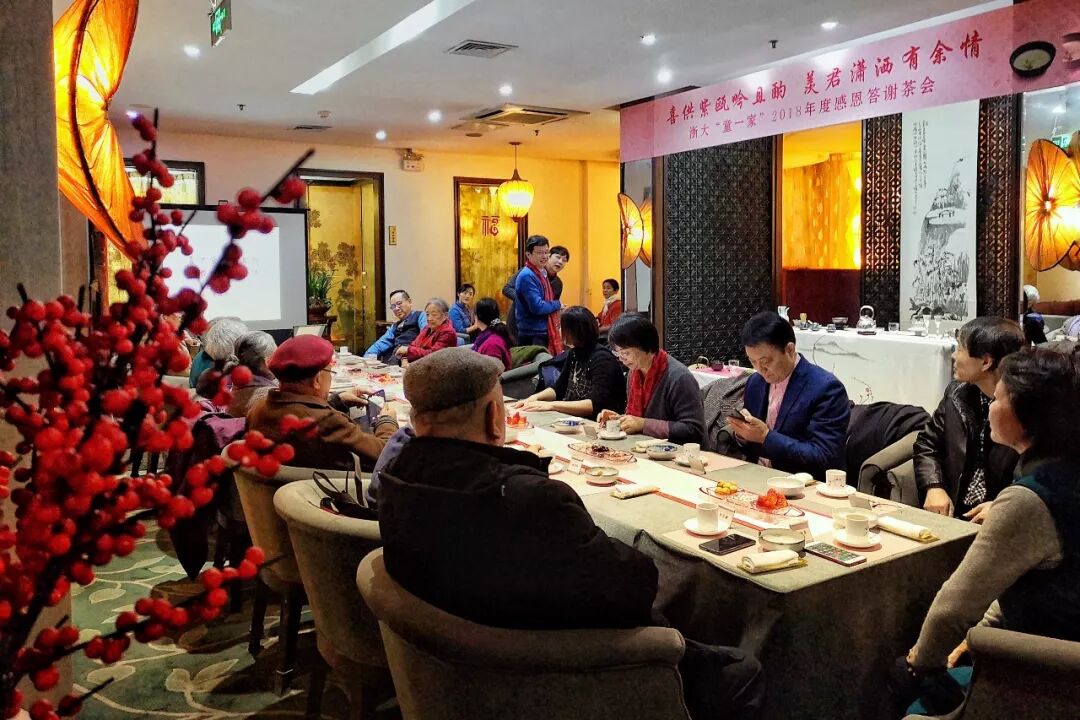 30日上午的浙大“童一家”感恩茶會,邀請到了絕大多數(shù)在浙大“童一家”任教過的老師,童啟慶、程啟坤、姚國坤、徐南眉、阮浩耕、朱家驥、張士康、王岳飛、于良子、屠幼英、龔淑英、陳杭明、李芳、湯一、陳萍、倪曉英、朱曉玲、顧志雷、陳英、陳燚芳、沈黎明、朱曉麗以及浙大“童一家”全體工作人員參與了茶會。
