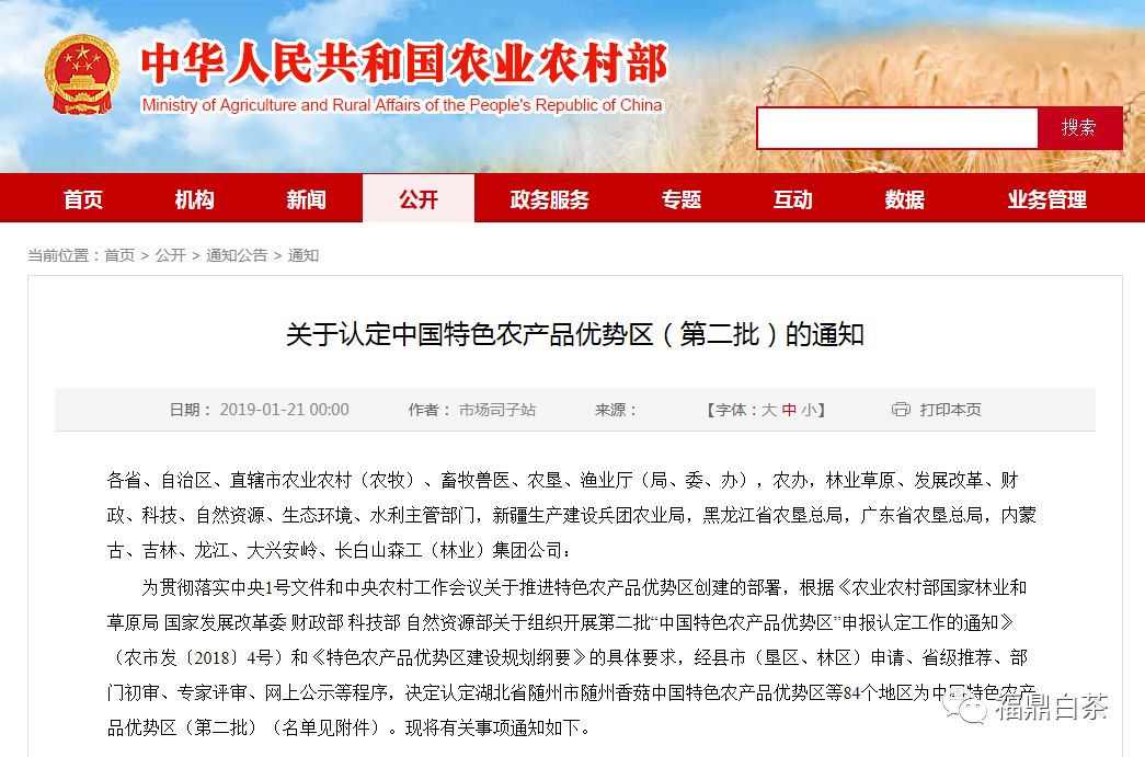 近日,國(guó)家農(nóng)業(yè)農(nóng)村部、中央農(nóng)村工作領(lǐng)導(dǎo)小組辦公室、國(guó)家林業(yè)和草原局等九部委聯(lián)合認(rèn)定了中國(guó)特色農(nóng)產(chǎn)品優(yōu)勢(shì)區(qū)(第二批),福建省福鼎市福鼎白茶中國(guó)特色農(nóng)產(chǎn)品優(yōu)勢(shì)區(qū)成功入選。
