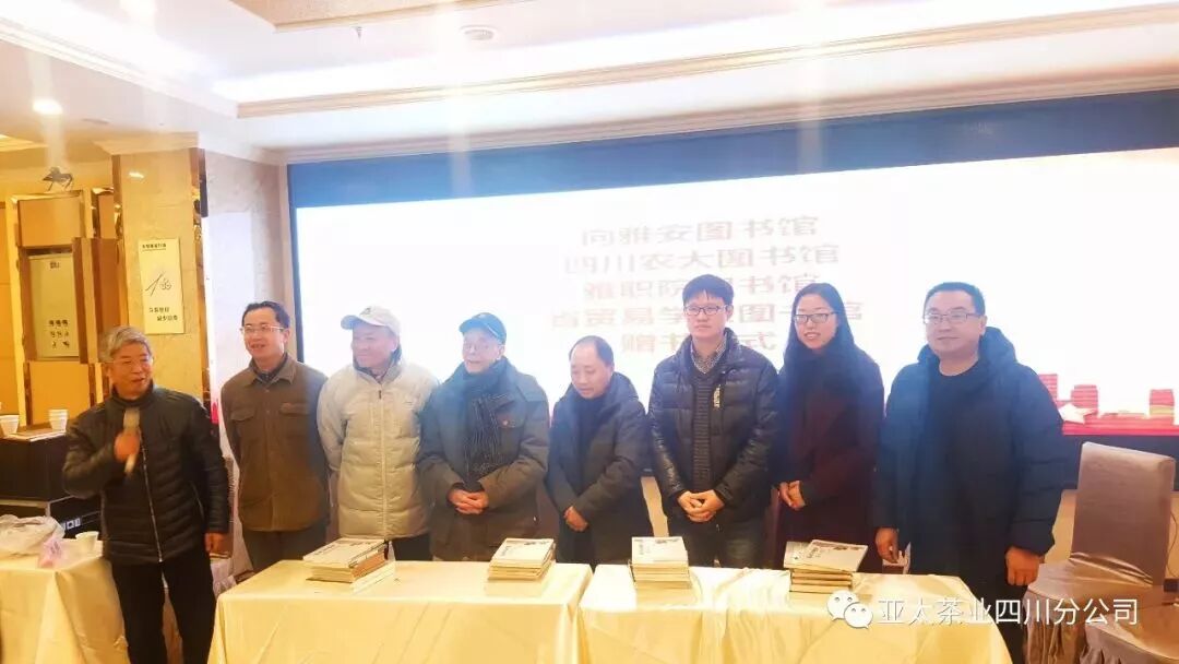 4位作者向雅安圖書館、四川農(nóng)大圖書館、雅職院圖書館、省貿(mào)易學(xué)校圖書館贈(zèng)書儀式