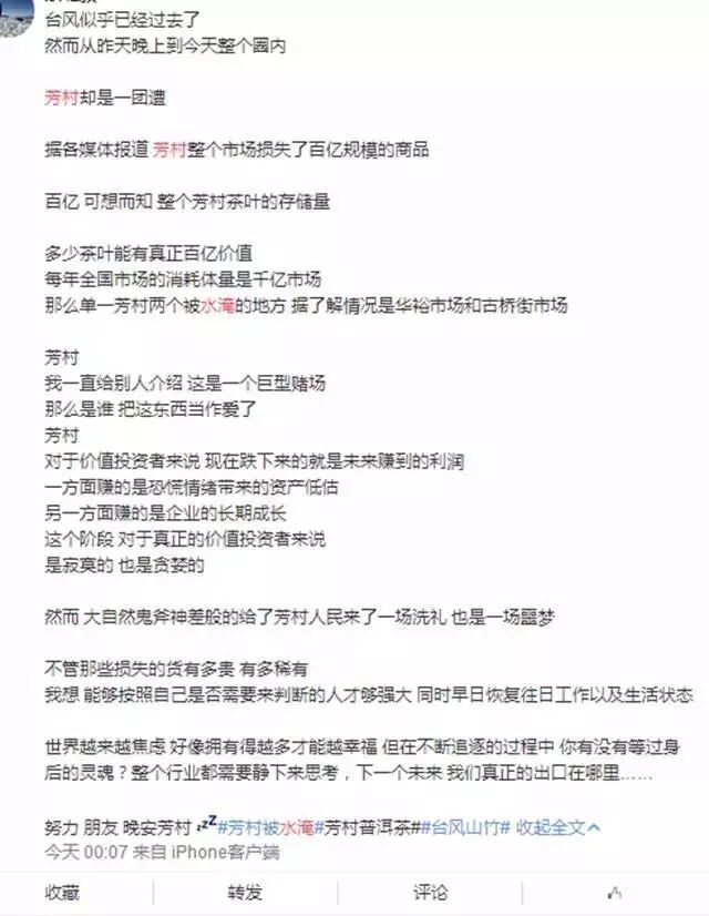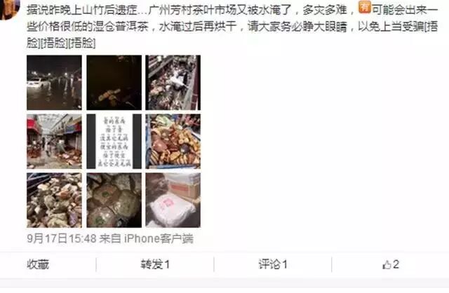 有人竟然在朋友圈發(fā)文,建議茶商朋友盡快將水浸的茶葉烘干,低價處理將損失降到最小。