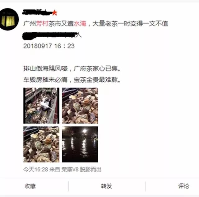 事實(shí)上,這次芳村水浸,部分意識較高的茶商,早在臺風(fēng)來前,就做好了安全防范措施,或已將名貴茶葉轉(zhuǎn)移,幾無損失。這完美詮釋了茶葉良好倉儲的重要性。