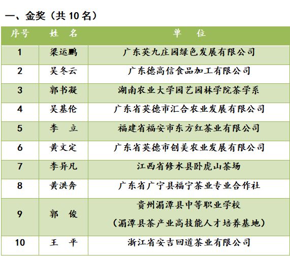 9月21日,2018首屆全國紅茶加工制作大賽在英德落下帷幕,經(jīng)過三天的緊張比賽,最終評出金獎10名、銀獎20名、銅獎30名和優(yōu)秀獎50名。