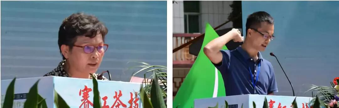 中國(guó)茶葉流通協(xié)會(huì)副會(huì)長(zhǎng)王秀蘭、廣東省農(nóng)業(yè)廳總農(nóng)藝師陸國(guó)煌、清遠(yuǎn)市人民政府副市長(zhǎng)雷玉春、廣東省農(nóng)科院副院長(zhǎng)何秀古、清遠(yuǎn)市農(nóng)業(yè)局局長(zhǎng)張偉杰、英德市人民政府副市長(zhǎng)黃永晨,廣東省茶業(yè)行業(yè)協(xié)會(huì)專職副會(huì)長(zhǎng)張黎明、華南農(nóng)業(yè)大學(xué)園藝學(xué)院副院長(zhǎng)曹藩榮共同為大賽啟幕