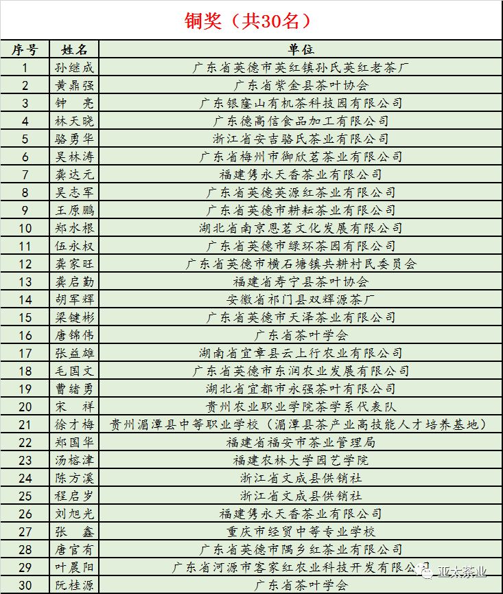 中國(guó)茶葉流通協(xié)會(huì)行業(yè)發(fā)展部主任申衛(wèi)偉、廣東省茶業(yè)行業(yè)協(xié)會(huì)秘書長(zhǎng)張黎明、廣東省農(nóng)業(yè)科學(xué)院茶葉研究所所長(zhǎng)操君喜、英德市人民政府副市長(zhǎng)黃永晨共同為獲得銅獎(jiǎng)選手頒獎(jiǎng)