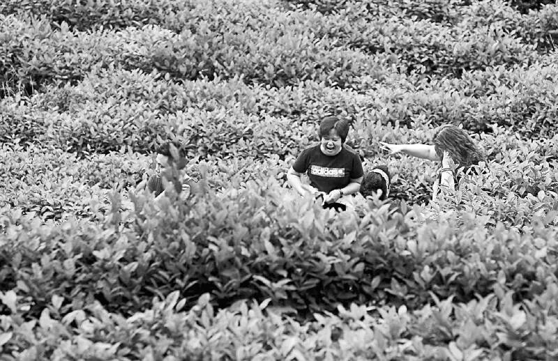 雅安茶園中游玩的游客樂(lè)開(kāi)了花