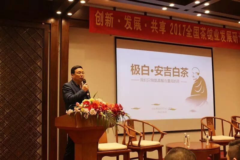 ? ? 由安茶集團技術總監(jiān)陳鎖先生給大家分享安吉白茶產業(yè)及極白品牌發(fā)展之路。陳鎖先生自稱為種茶人,也說是自己的第一篇種茶人記錄,得到了他人對安吉白茶的贊賞,也開啟了二十多年的茶人之路。他的演講內容涉及安吉“七山一水兩分田”的優(yōu)良生態(tài)條件、安吉白茶的發(fā)展歷史、極白的的品牌發(fā)展。安吉白茶的發(fā)展分為母樹發(fā)現與品種培育的十年、品種推廣與基地建設、品牌推廣與市場推廣三階段。安吉白茶的優(yōu)良品質是推廣的基礎,高氨基酸賦予其鮮爽的口感,一芽一葉的高標準采摘奠基高端的定位。安茶集團產品原則:安全、穩(wěn)定、原產地。安全是消費者最關注的點,穩(wěn)定來自于極白堅守統(tǒng)一標準;統(tǒng)一農資;統(tǒng)一檢測;統(tǒng)一收購,原產地。產品系列有經典v3、主流產品大師v6、v8、定制款高山茶v9。另外,除了銷售外,他提到極白還會開啟消費者互動的經營模式。