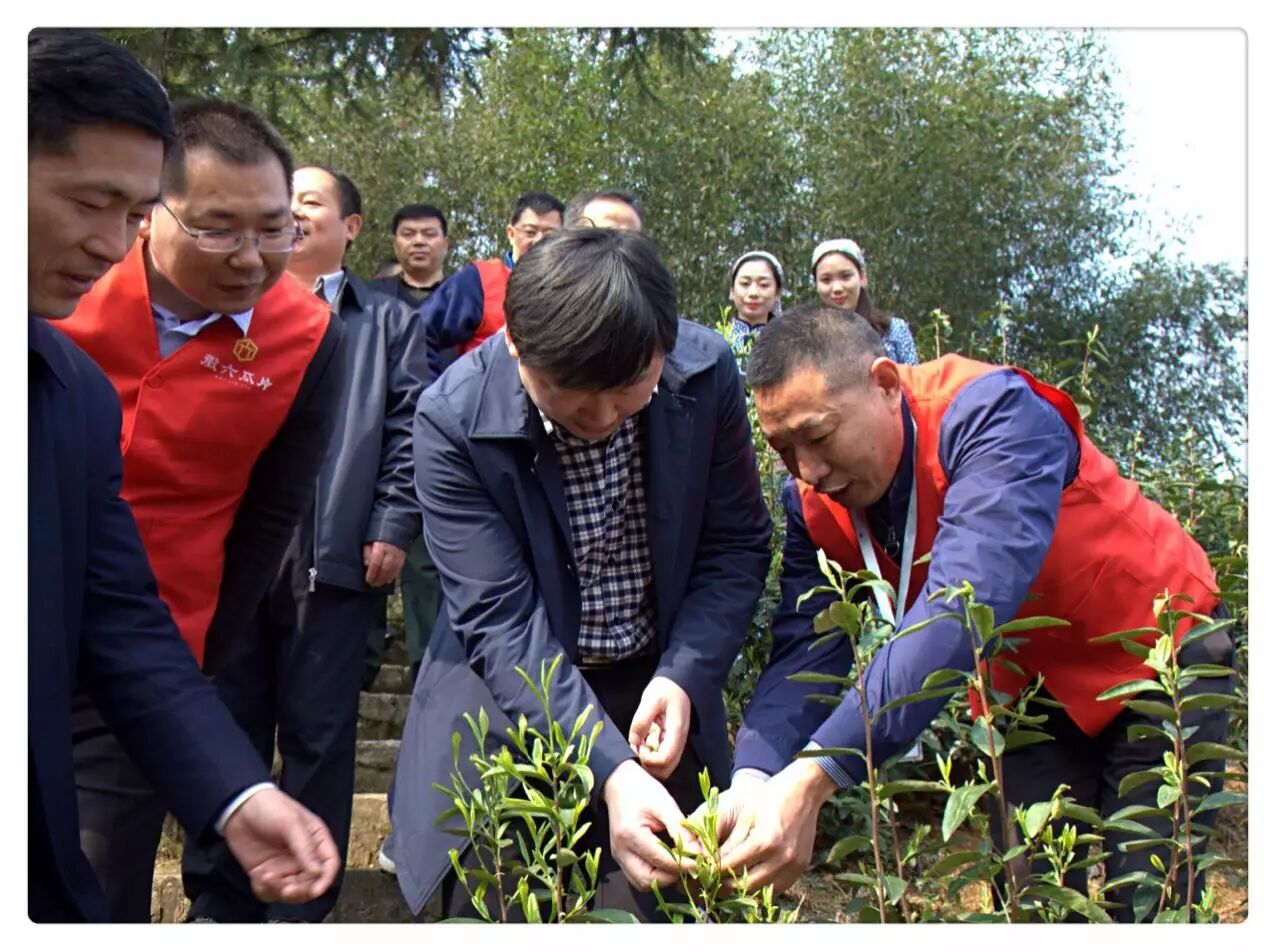 六安市農(nóng)委總農(nóng)藝師謝申海、裕安區(qū)區(qū)委常委、政法委書記施萬(wàn)章、裕安區(qū)副區(qū)長(zhǎng)陳久松、裕安區(qū)農(nóng)委主任武政權(quán)、裕安區(qū)茶谷辦主任王修宏、裕安區(qū)農(nóng)委副主任管兵、裕安區(qū)茶谷辦副主任張雁 等領(lǐng)導(dǎo)出席新茶開園頭采。