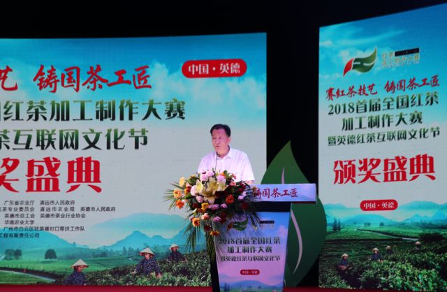 圖  中國茶葉流通協(xié)會會長王慶在2018首屆全國紅茶加工制作大賽閉幕式上致辭
