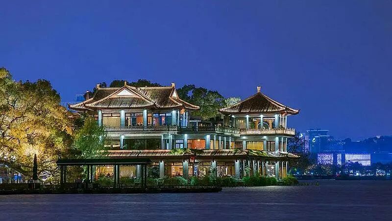 “未能拋得杭州去,一半勾留是此湖。”憶杭州,最讓人戀戀不舍的,當(dāng)然是西湖。在湖濱六公園,一幢磚紅色屋頂?shù)男歉裢饬裂?。倚湖臨城,連崗三面,在水一方。它,就是杭州人心中的第一茶樓——湖畔居。