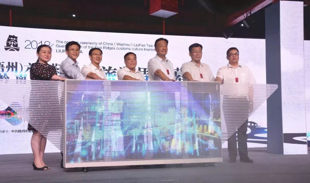 “2018年中國(梧州)六堡茶暨廣西嶺南風(fēng)情文化旅游周開幕!”市長李杰云朗聲宣布。隨后,蔣濟(jì)雄、王慶、李杰云、甘霖、張學(xué)軍、賈蔚、武晨等領(lǐng)導(dǎo)嘉賓來到啟動臺前,共同啟動活動。