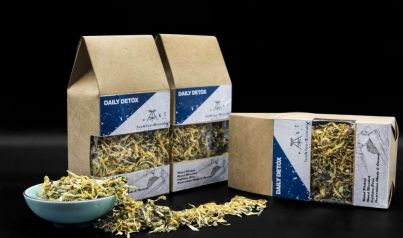 用金盞花、紅三葉草和牛蒡根進(jìn)行拼配的風(fēng)味茶。