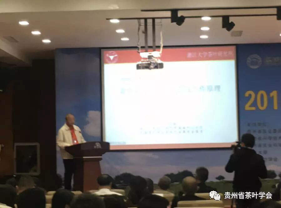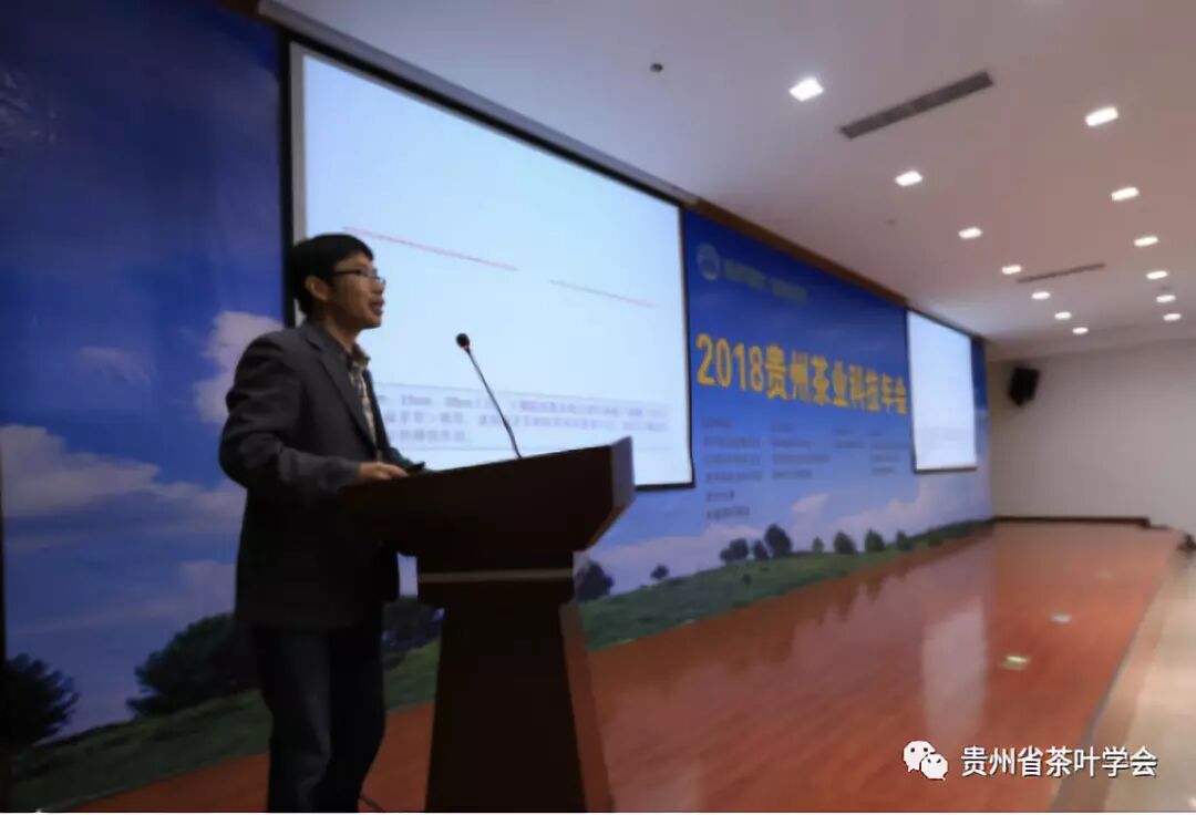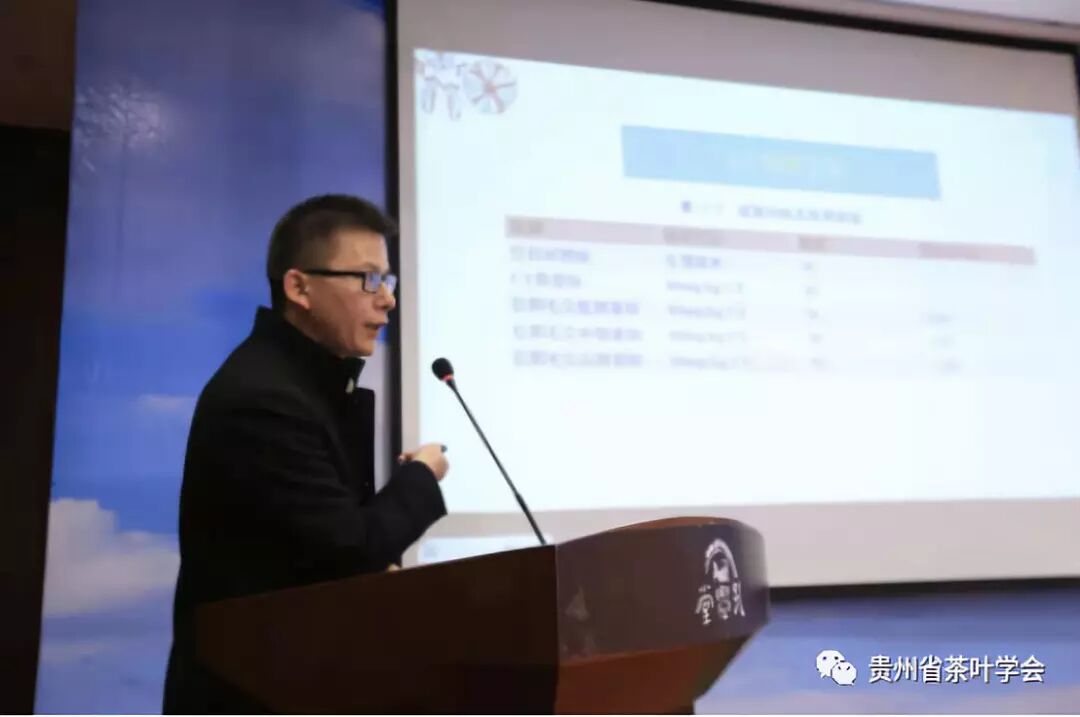 圖為貴州省農(nóng)業(yè)科學(xué)院茶葉研究所茶葉加工團(tuán)隊(duì)首席專家潘科作報(bào)告