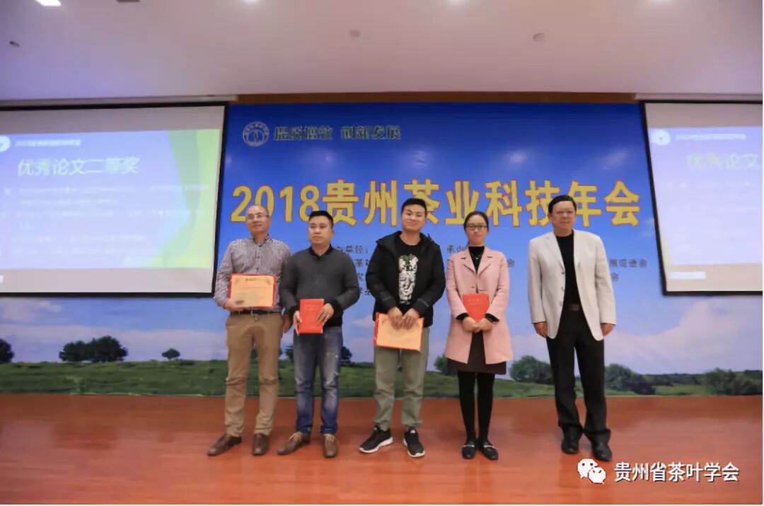 貴州省茶辦品牌市場(chǎng)培育組組長(zhǎng)雷睿勇,貴州省農(nóng)業(yè)科學(xué)院茶葉所黨委書記陳銘歡為優(yōu)秀論文二等獎(jiǎng)獲得頒獎(jiǎng)