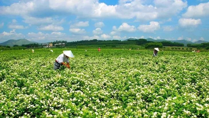 福州是我國最早開始制作茉莉花茶的產(chǎn)區(qū)。鼎盛時期,福州的茉莉花種植面積一度高達10萬余畝,與茉莉花有關(guān)的從業(yè)人員達20萬人以上,占當時人口的20%,甚至曾有過“一擔茉莉一錢金”的榮光。目前,福建福州茉莉花種植面積1.8萬畝,產(chǎn)量0.9萬噸,產(chǎn)值2.4億元。