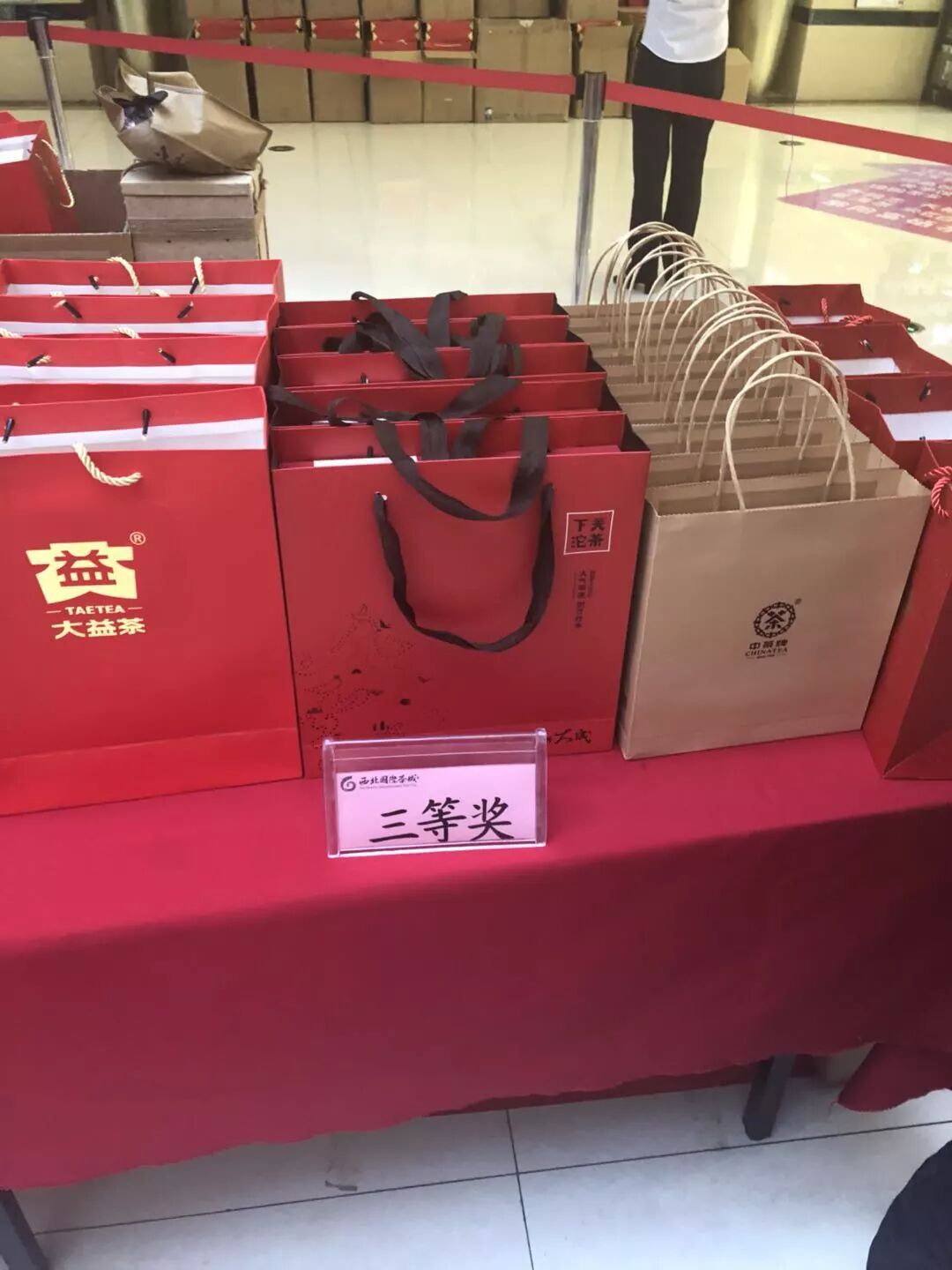 參會品牌茶企代表為現(xiàn)場幸運觀眾頒發(fā)三等獎