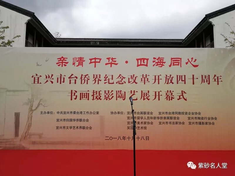 10月18日上午,由中共宜興市委臺(tái)灣工作辦公室、宜興市歸國(guó)華僑聯(lián)合會(huì)、宜興市文學(xué)藝術(shù)界聯(lián)合會(huì)共同主辦的“親情中華.四海同心”宜興市臺(tái)僑界紀(jì)念改革開放四十周年書畫攝影陶藝展在吳冠中藝術(shù)館舉行了開幕儀式。