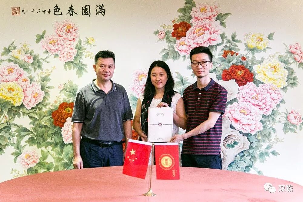 雙陳創(chuàng)始人陳永堂先生(左)拱墅區(qū)經(jīng)銷商苑冰女士(中)雙陳銷售部高總監(jiān)(右)在簽約現(xiàn)場合影留念