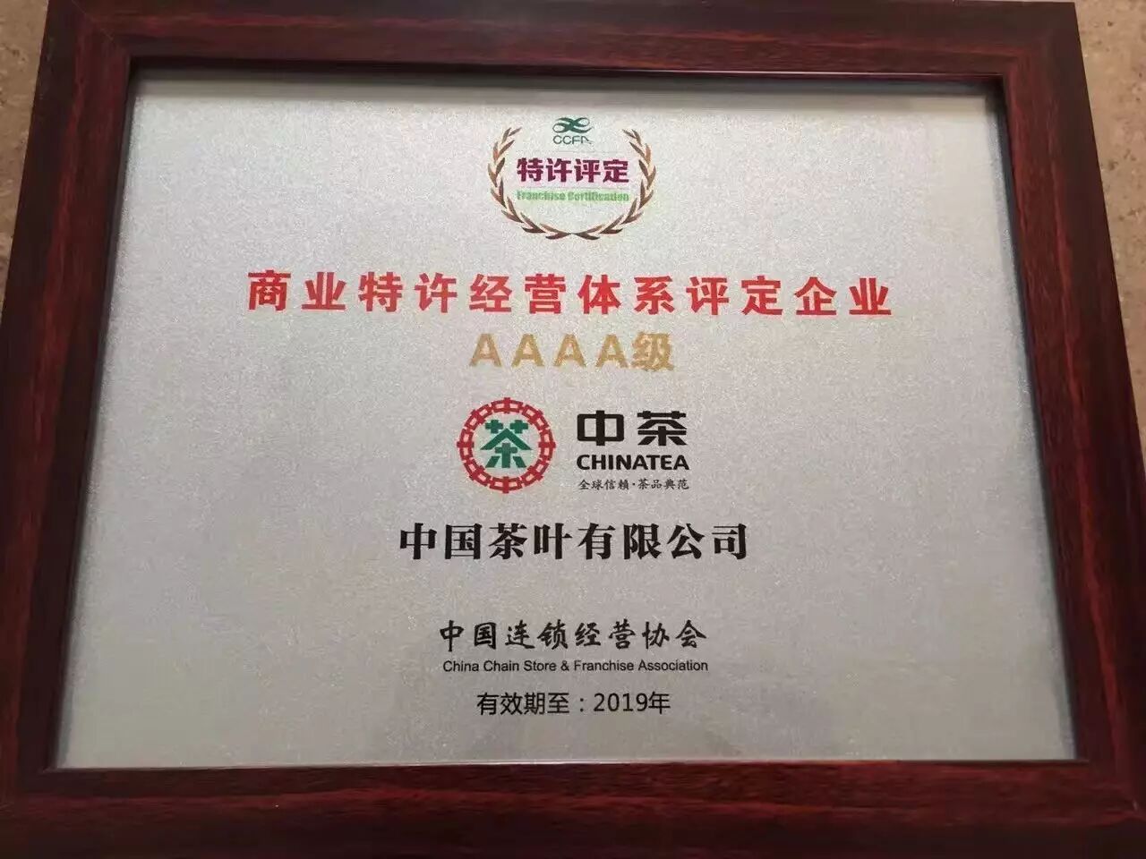 2017年3月4日,由中國連鎖經營協(xié)會主辦的2017中國特許加盟大會在北京國家會議中心召開,會上公布了商業(yè)特許經營管理體系等級評定(AAAA級首批名單),中國茶葉率先榮獲AAAA級評定。