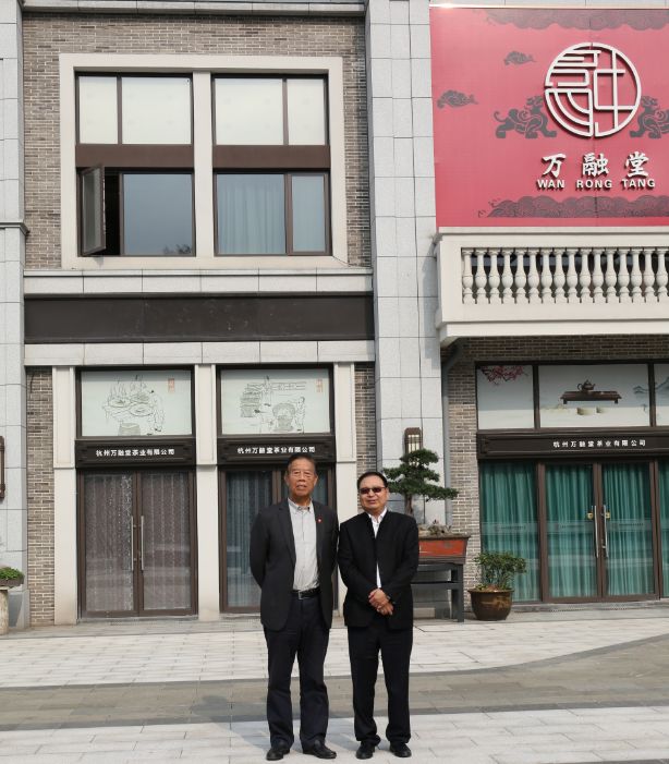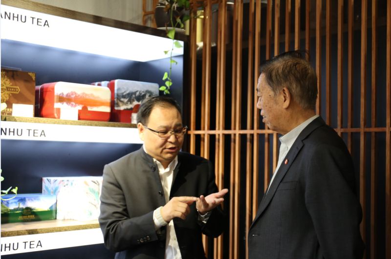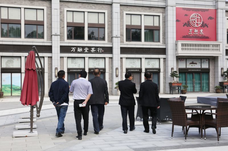 張董事長(zhǎng)陪同各位參觀杭州萬虎茶葉有限公司旗下門店及茶文化展廳。