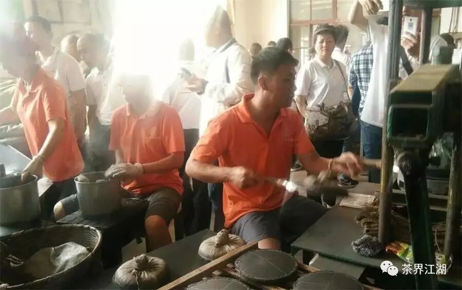參觀云南農(nóng)墾集團(tuán)勐海八角亭茶業(yè)有限公司普洱熟茶生產(chǎn)過程。