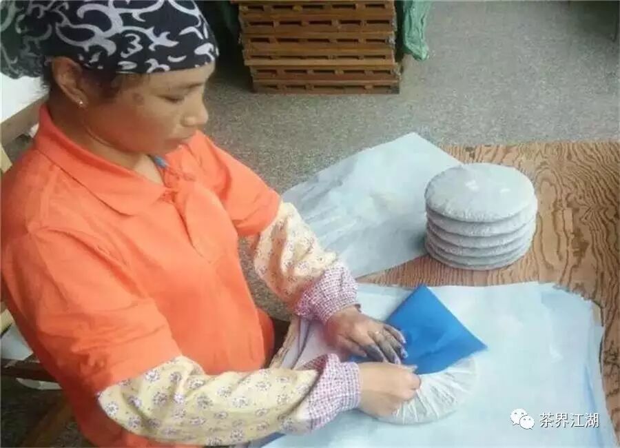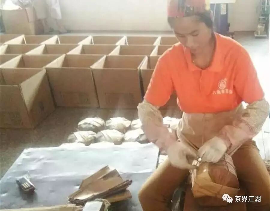 觀看云南農(nóng)墾集團(tuán)勐海八角亭茶業(yè)有限公司包裝車間普洱茶七子餅包裝過程。