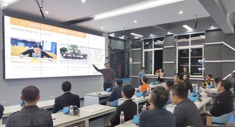 貴州盛華職業(yè)學(xué)院是華人商界領(lǐng)袖、臺灣愛國企業(yè)家王雪紅陳文琦夫婦捐資舉辦的一所非營利性公益慈善大學(xué)。11月4日傍晚,青年益工社導(dǎo)師來到百鳥河數(shù)字小鎮(zhèn),探訪了這所以“公益興學(xué),教育扶貧”為宗旨的“貴州省現(xiàn)代職業(yè)教育改革創(chuàng)新試點院校”。導(dǎo)師團體驗了學(xué)院的唐人坊非遺學(xué)院實訓(xùn)室、茶訓(xùn)室和VR智慧教室,觀賞了盲人學(xué)生藝術(shù)團的表演,全面了解了學(xué)校“作業(yè)就是作品,作品就是產(chǎn)品”的育人理念,以及實施“校企深度合作”,通過扶弱、扶技、扶錢,幫助貴州貧困學(xué)生掌握專業(yè)技能、實現(xiàn)高薪就業(yè)的成功實踐。
