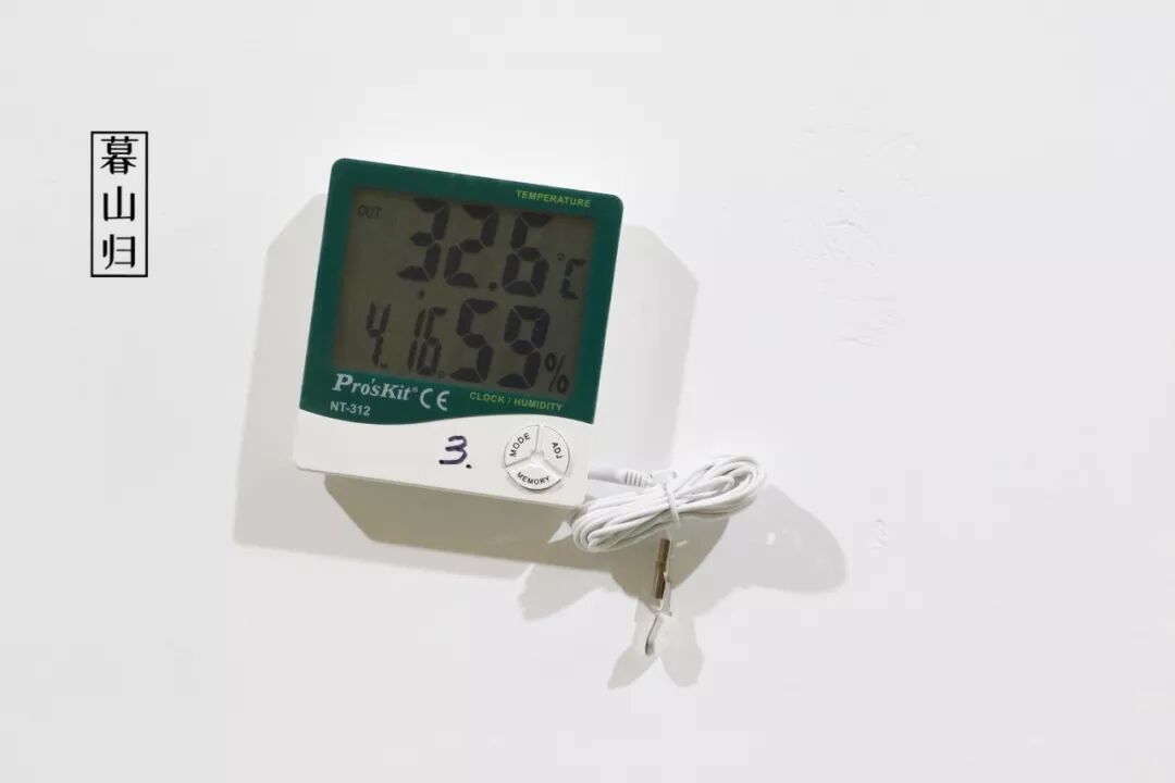 首先在干燥方面,白茶的儲(chǔ)存環(huán)境當(dāng)中,室內(nèi)濕度應(yīng)控制在60%以下。茶友們可以購買如下圖所示的濕度測(cè)定儀,對(duì)存茶濕度進(jìn)行實(shí)時(shí)監(jiān)控。