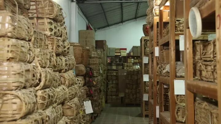 ▲茶藝樂(lè)園的茶倉(cāng)在梅雨時(shí)節(jié)茶倉(cāng)會(huì)堵上各處縫隙,防止?jié)駳庹慈静枞~