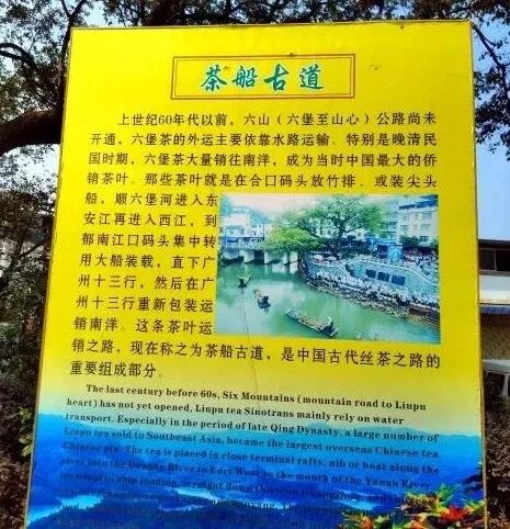已有一千五百多年的歷史。六堡茶興于唐宋,盛于明清,通過這條“茶船古道”,暢銷海外。